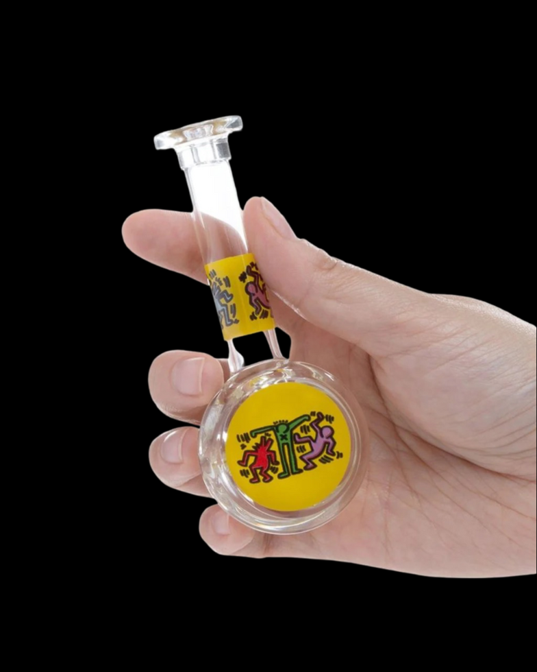 In collaboration with the iconic artist, Keith Haring, comes the K. Haring Glass collection. The Spoon by K. Haring features Keith's iconic artistry with hand-applied designs on the neck and base of the pipe. Made of thick, high quality borosilicate glass, this hammer-style spoon pipe offers superior airflow and provides extraordinary flavor.